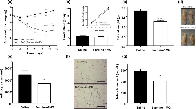 Таким образом, ингибирование NNMT 5-амино-1MQ в доклинических исследованиях сопровождалось снижением массы тела, уменьшением белой жировой ткани и снижением размера адипоцитов у мышей с диет-индуцированным ожирением. Также в этих экспериментах не отмечалось существенного снижения потребления пищи и не наблюдалось явных нежелательных эффектов на фоне короткого курса введения.