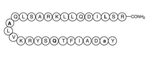 Последовательность: Tyr-D-Ala-Asp-Ala-Ile-Phe-Thr-Gln-Ser-Tyr-Arg-Lys-Val-Leu-Ala-Gln-Leu-Ser-Ala-Arg-Lys-Leu-Leu-Gln-Asp-Ile-Leu-Ser-Arg