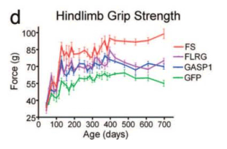 Один интересный аспект исследования влияния фоллистатина на рост мышц обнаружил, что введение гена фоллистатина в любом возрасте может привести к долгосрочным преимуществам в гипертрофии мышц. В мышиных моделях однократное введение фоллистатина посредством генной терапии привело к более чем двухлетнему увеличению массы и силы как у нормальных, так и у дистрофичных животных. Эти преимущества наблюдались независимо от возраста животного на момент генной терапии [4].