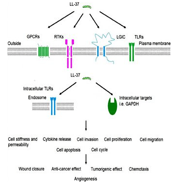 LL-37, в первую очередь позиционируемый как антимикробный пептид, на самом деле играет роль в ряде воспалительных заболеваний, таких как псориаз, волчанка, ревматоидный артрит и атеросклероз. В зависимости от локальной воспалительной среды и конкретных вовлеченных клеток, LL-37 имеет несколько различных модулирующих иммунную систему поведений. Было обнаружено, что он: