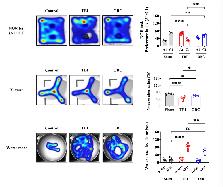 Рисунок 3: Результаты тестов когнитивных функций, включая NOR, Y-образный лабиринт и водный лабиринт Морриса.