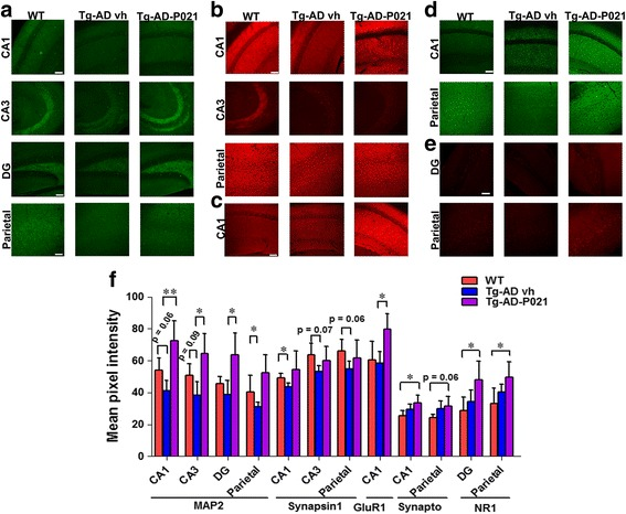 В частности, P21, по-видимому, спасает от тенденции в мозге, пораженном болезнью Альцгеймера, к снижению экспрессии MAP2. MAP2 (микротрубочковый-ассоциированный белок 2) является маркером синаптического роста между нейронами. Снижение уровня этого белка предполагает снижение синаптогенеза/нейрогенеза и является маркером прогрессирования заболевания при болезни Альцгеймера. Аналогичным образом, P21, как видно, спасает от снижения: