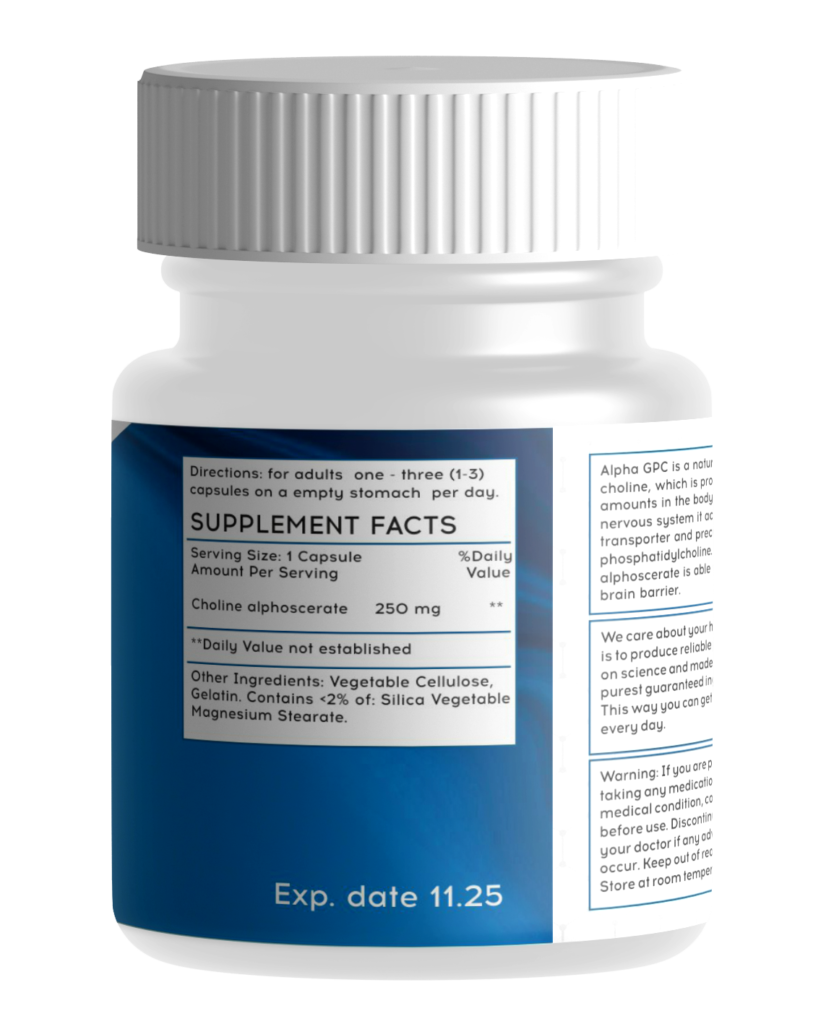 Alpha GPC - это натуральное соединение холина, небольшие количества которого присутствуют в организме человека. Он важен как переносчик холина в центральной нервной системе и предшественник фосфатидилхолина, который формирует нервную систему. Его отличие от холина заключается в способности проникать через гематоэнцефалический барьер и растворяться в воде.