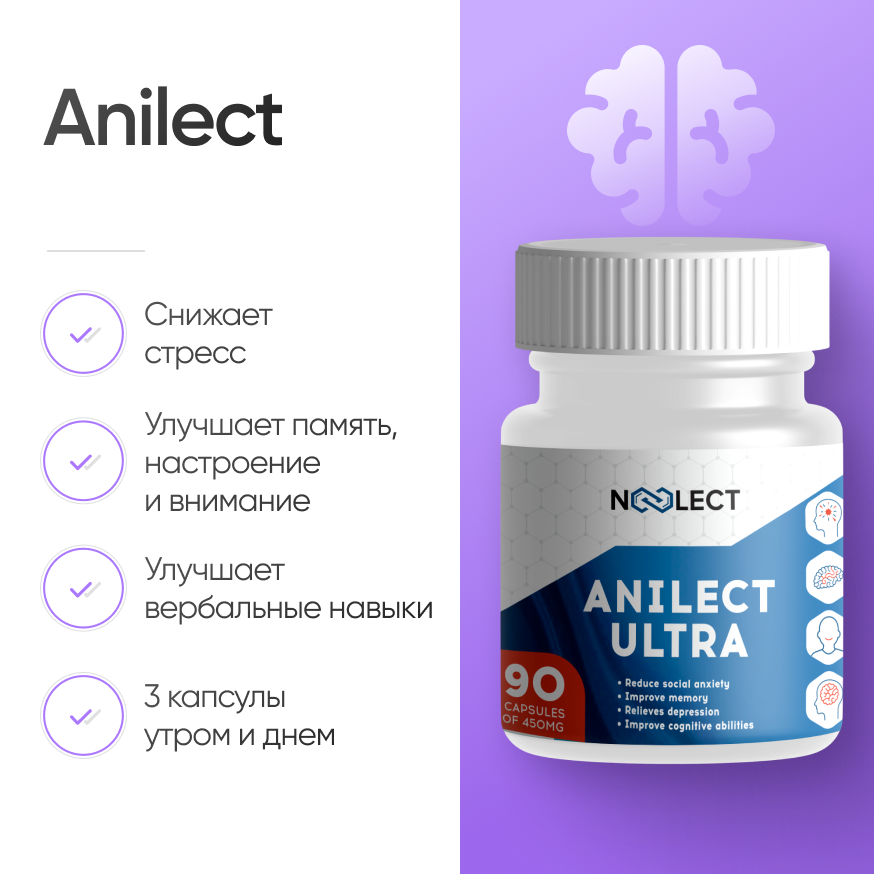 Anilect, содержащий 90 капсул анирацетама, представляет собой современный ноотроп, предназначенный для повышения когнитивных функций, таких как память, мотивация и креативность у здоровых людей.