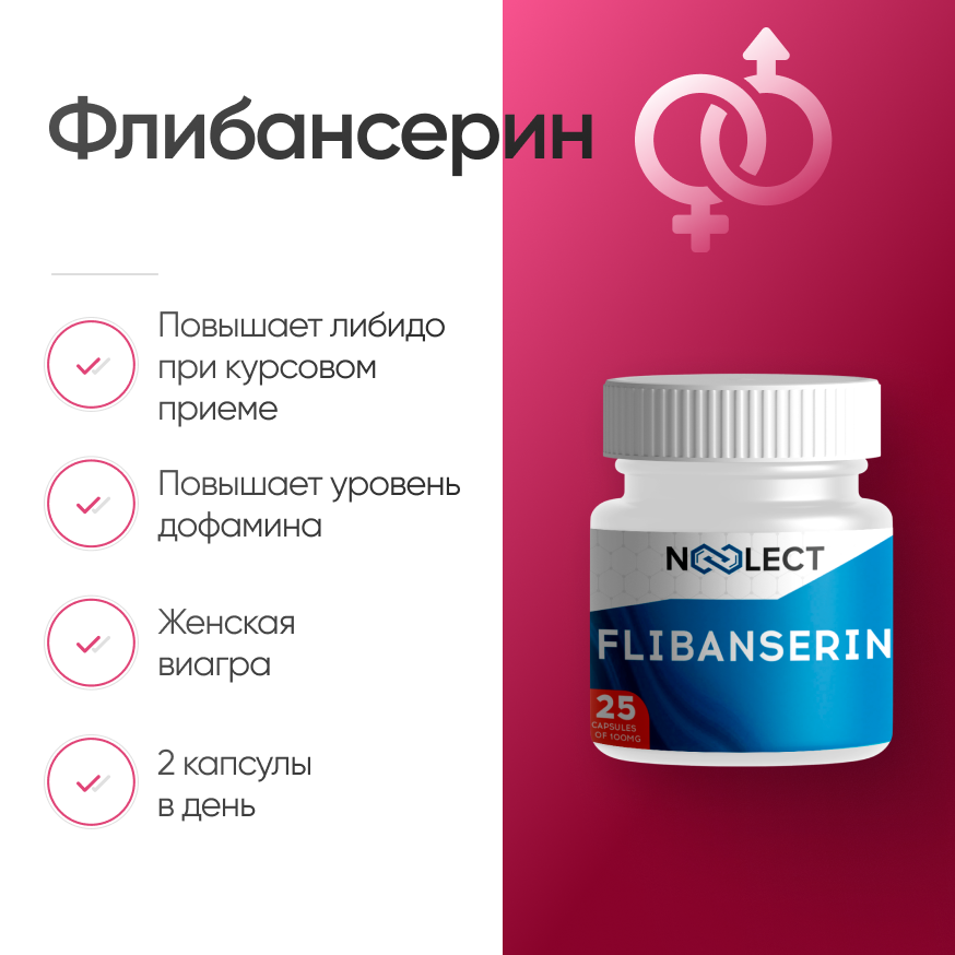 Flibanserin – единственный препарат, одобренный для повышения полового влечения у женщин. Каждая капсула содержит 100 мг активного вещества.
