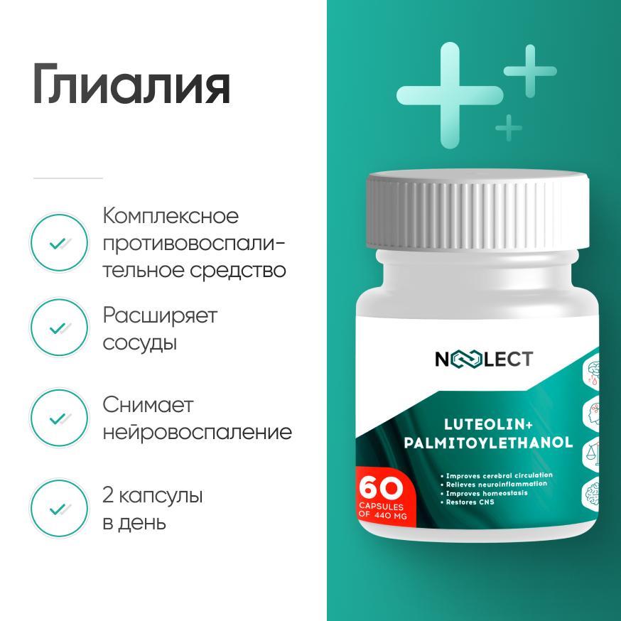 Глиалия - это комплексная пищевая добавка, в состав которой входят пальмитоилэтаноламид (ПЕА) и лютеолин. Продукт разработан для снятия боли и воспаления разного типа. В одной капсуле содержится 400 мг ПЕА и 40 мг лютеолина, заключенные в растительную капсулу, что делает добавку подходящей для веганов.