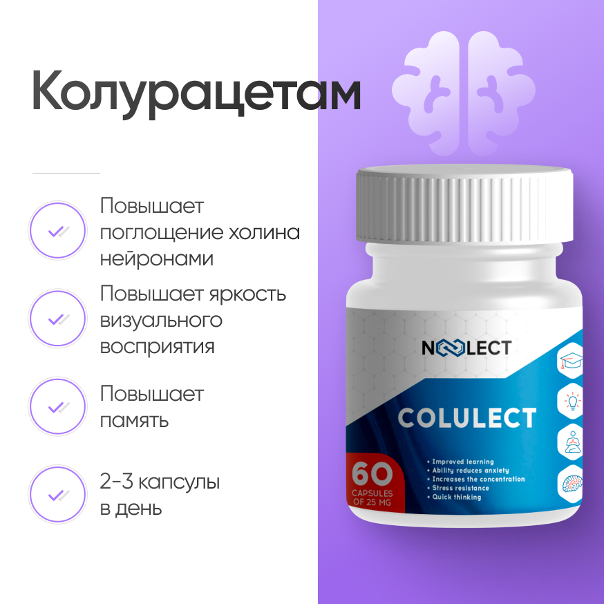 Колурацетам - современный представитель ноотропов из семейства рацетамов, содержащийся в упаковке из 60 капсул по 25 мг каждая. Этот ноотроп воздействует на улучшение памяти и повышение работоспособности, активируя механизм захвата ацетилхолина (HACU), что недоступно другим рацетамам, включая пирацетам.