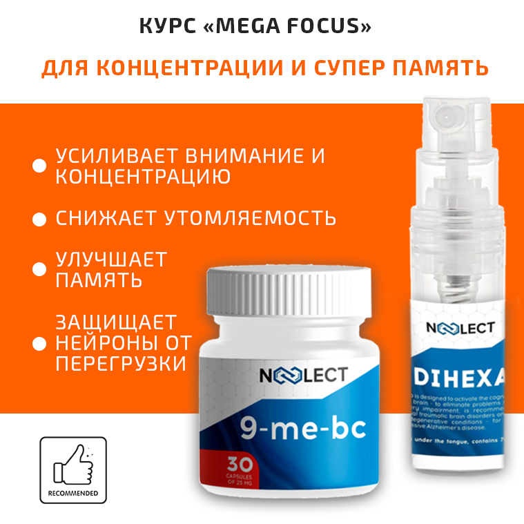 Курс «MEGA Focus» - это простой и действенный способ повысить концентрацию, улучшить память и защитить нейроны в условиях повышенной умственной нагрузки. Программа прекрасно подходит для повседневной поддержки когнитивных функций, особенно в периоды интенсивной учебной или рабочей деятельности. Два компонента курса подобраны для мягкой и заметной поддержки внимания и когнитивной выносливости.