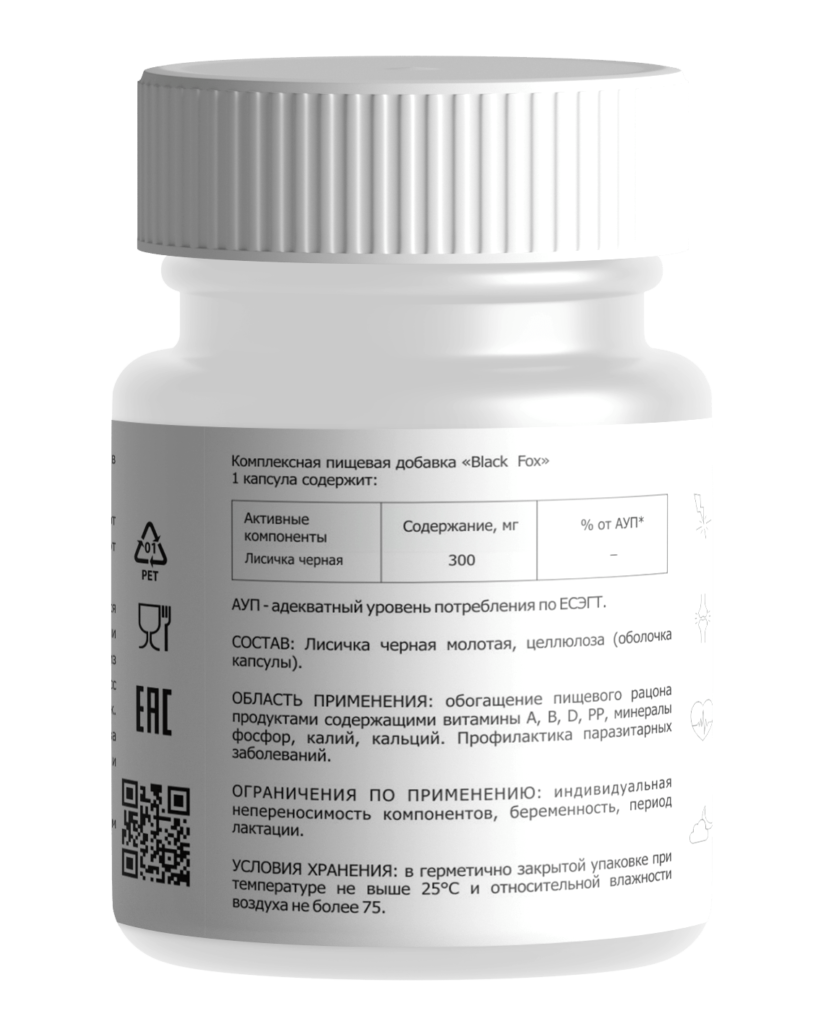 Лисичка Черная - это натуральное средство в форме капсул, каждая из которых содержит 300 мг сушеного и молотого сырья «лисичка черная». Это веганский продукт, который сохраняет все полезные свойства даже после термообработки.
