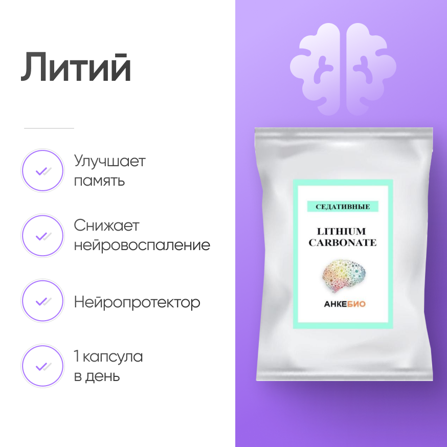 Литий - это необходимый микроэлемент, который содержится в различных продуктах, таких как зерно и овощи. Исследования показывают, что литий поддерживает процесс распада скопившихся белков и способствует естественной очистке мозга от клеточного мусора.