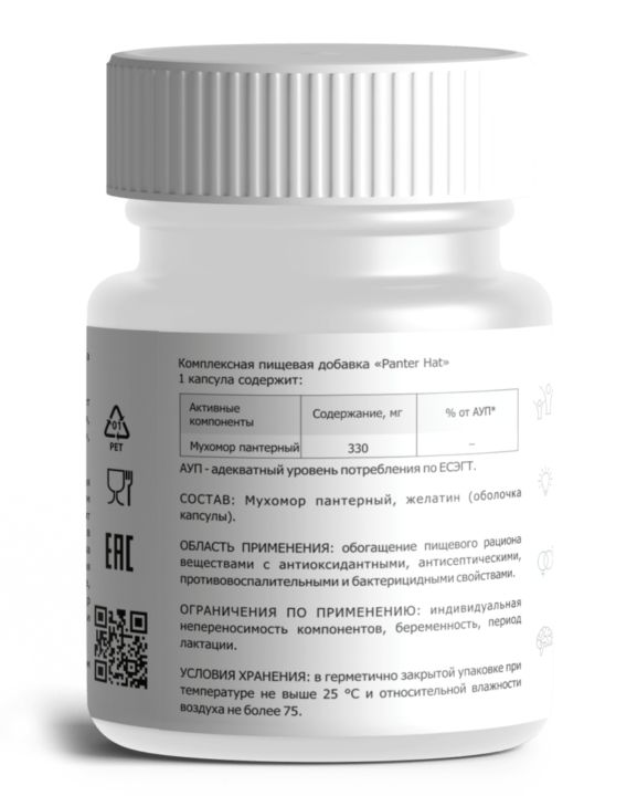 Наши сушеные пантерные мухоморы собраны в экологически чистой Рязанской области. Каждая капсула содержит 0,33-0,35 г порошка из высушенных шляпок грибов, что рассчитано на микродозинг. В упаковке - полный курс на 2 месяца.