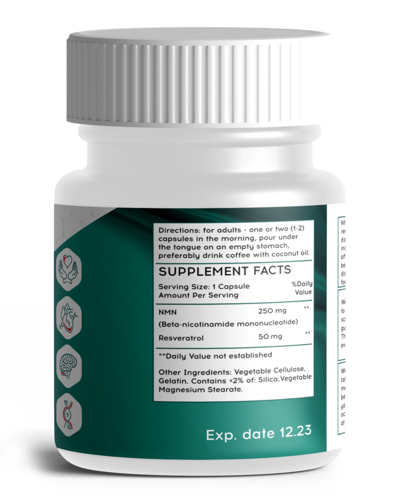 Состав: Никотинамид мононуклеотид 250мг + Ресвератрол 50мг