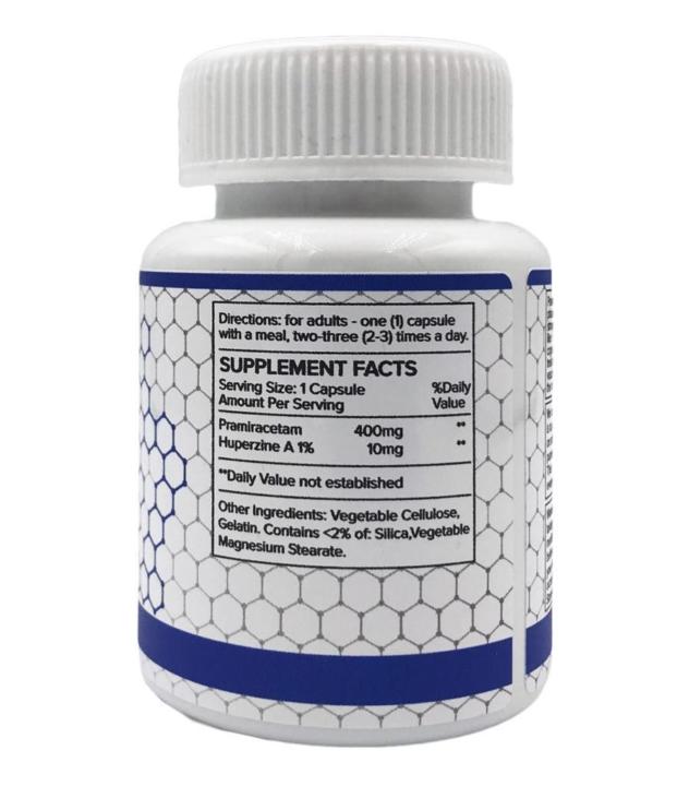 Каждая капсула содержит 410 мг: 400 мг Прамирацетама и 10 мг Гиперзина А (1%).