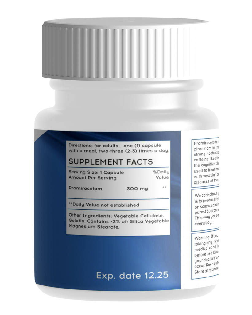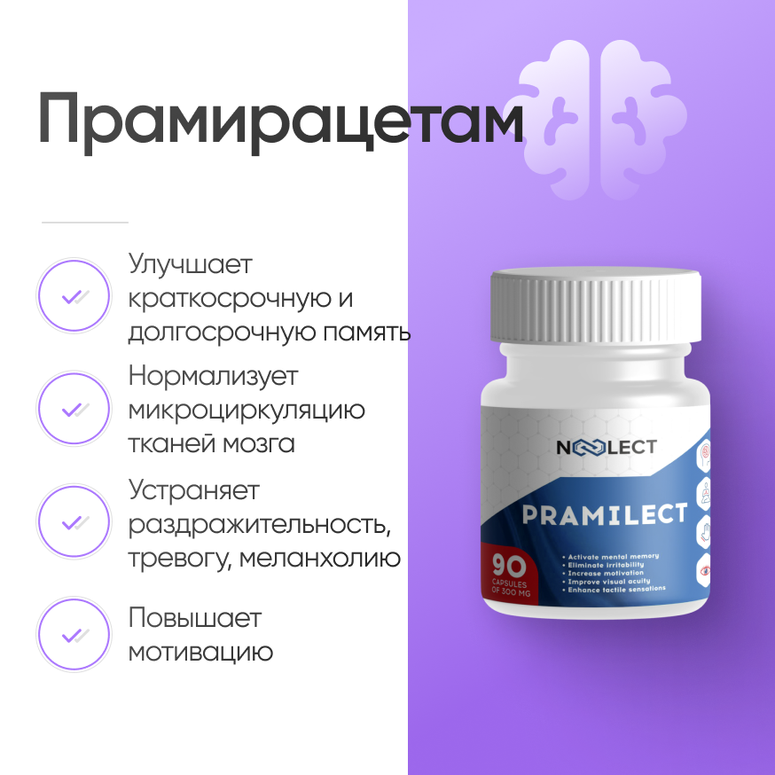 Прамирацетам - это мощный ноотроп, производный от пирацетама. Разработанный в 1984 году, он предназначен для борьбы с амнезией и стимулирует когнитивные функции мозга. Данное средство способствует улучшению памяти, концентрации внимания и аналитических способностей. Оно также полезно при лечении когнитивных нарушений, вызванных сосудистыми деменциями, травмами мозга, ишемическим инсультом и другими заболеваниями центральной нервной системы. Прамирацетам может помочь в уменьшении раздражительности и тревожности, улучшении настроения, а также в остроте зрения и восприятии цвета.
