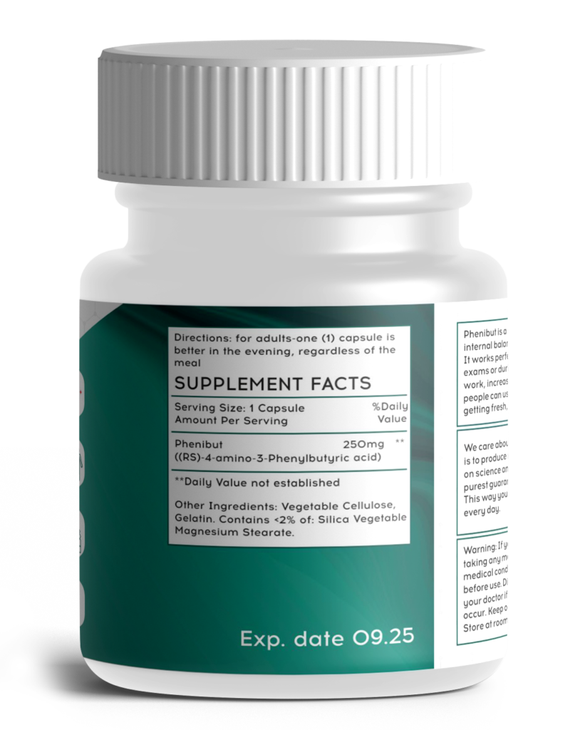 Одна капсула содержит 250 мг β-фенил-γ-аминомасляной кислоты.