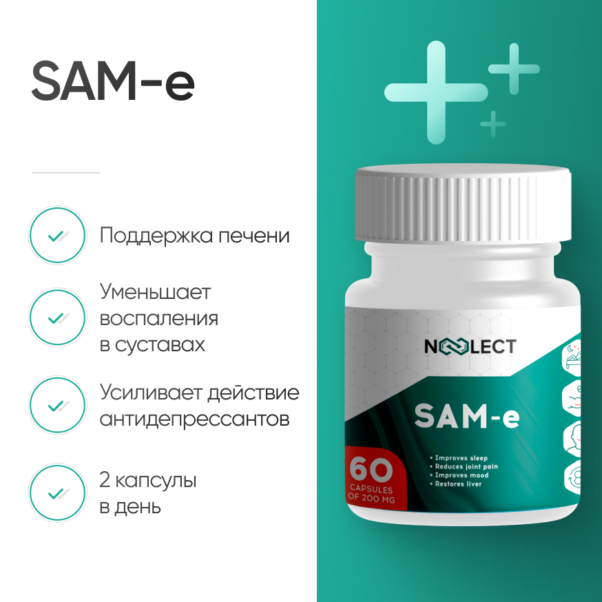 S-аденозилметионин, также известный как SAM, SAMe или адеметионин, является мощным гепатопротектором с выраженной антидепрессивной активностью. Обладает детоксицирующими, регенерирующими, антиоксидантными и нейропротекторными свойствами.
