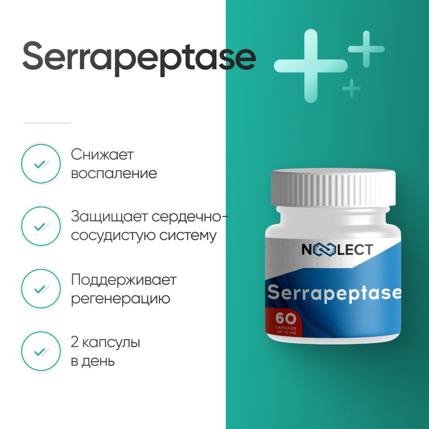 Несмотря на то, что эффективность препарата пока не имеет полных доказательств из-за ограниченного числа исследований на людях, он широко используется как пищевая добавка в Европе и Восточной Азии. Серрапептаза представлена в виде высокоэффективной формулы с кишечнорастворимым покрытием, которое защищает ферменты до их попадания в кишечник, обеспечивая оптимальное всасывание.