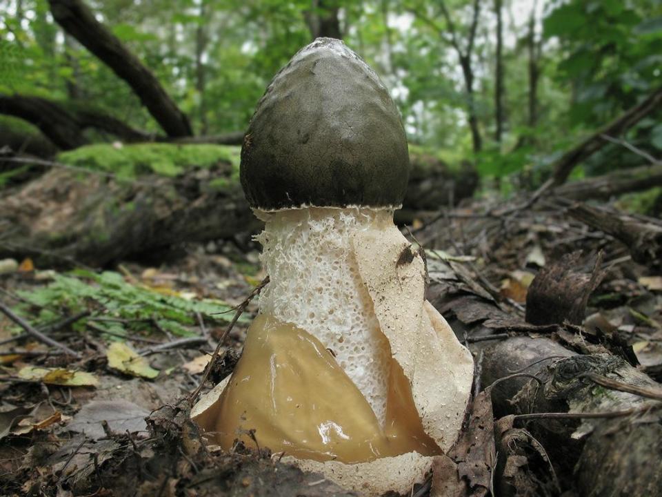 Через 3 недели формируется ножка, напоминающая губку, которая достигает в длину 15−20 см. Сверху распускается шляпка в форме колокольчика темного цвета. Она покрывается густой слизью с неприятным запахом гниения, становится сморщенной.